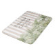 Introducing our Tropical Palm Trees Beige Stripes Beach House Bath Mat. Featuring watercolor illustration tropical plants with beige stripes as background. Suitable for Rental vacation beach house, coastal cottage, or even boat and ship.
