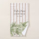Introducing our Tropical Palm Trees Beige Stripes Beach House Bath Towel Set. Featuring watercolor illustration tropical plants with beige stripes as background. Suitable for Rental vacation beach house, coastal cottage, or even boat and ship.