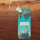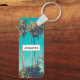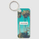 Personalised keychain with a beautiful photograph. Tall palm trees with long skinny trunks in front of a lovely green sky. Retro colour scheme. Relaxing and chill.