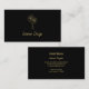 Tropical Interior Designer business card, with a palm trees drawing design on a black background. With gold typography lettering, you customize with your own name or title. A Modern professional way to get the word out about your interior design business.