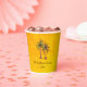 Tropical Bright Gold summer swim party paper cups, with a palm trees illustration design and customisable lettering. A great addition your picnic pool party with a beach theme.