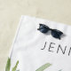 This beach towel design features a group of beautiful tropical lush green and brown watercolor palm trees on a simple, clean white background. Perfect for a beach lover. Personalise it with a first name or initial. Created by Simply Farmhouse Press.