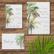 THIS VERSION DOES NOT HAVE THE FAKE WATERCOLOR PAPER BACKGROUND TO LET YOUR PAPER CHOICE SHINE THROUGH. Elevate your wedding celebration with our exquisite Tropical Palm Trees Modern wedding suite. These stunning invitations showcase a group of lush green and brown watercolor palm trees, set against a textured white watercolor paper background, creating a captivating and tropical atmosphere. Ideal for beach or destination weddings, these invitations effortlessly capture the essence of a dreamy getaway wedding. Let your guests feel the warmth of the tropics and the love in the air with these captivating invitations. Create a memorable and exotic wedding experience with our Tropical Palms invitations. Order yours today and make your special day even more unforgettable. It's part of the Tropical Palm Trees Modern Wedding Suite created by Simply Farmhouse Press.