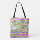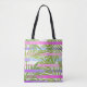 Tropical palm trees modern pink violet stripes tote bag