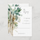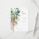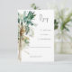 This wedding response card design features a group of beautiful tropical lush green and brown watercolor palm trees on a white watercolor background. Perfect for a beach or destination wedding. It's part of the Tropical Palm Trees Modern Wedding Suite created by Simply Farmhouse Press.
