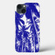 Exotic tropical palm trees in a posterised design. Blue and white.