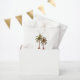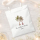 Tropical summer swim party favour bag, with a palm trees illustration design and black customisable lettering. Great for planning your picnic pool party with a beach theme.