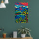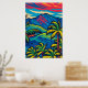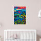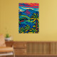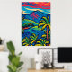 Vivid colours and playful energy make this piece a striking addition that brightens any room and compliments any decor. Cool wave blue, lush tropical greens, volcanic red and hot pink bring a bold Pop Art look to this beautiful landscape artwork.