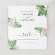 Tropical Green Palm Leaves and Blush Pink Flowers Watercolor with Faux Rose Gold Foil Geometric shape Spring or Summer Wedding Place Cards - includes beautiful and elegant script typography with modern tropical botanical flowers and greenery for the special Wedding day celebration.