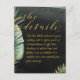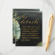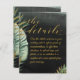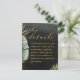 A Details enclosure card when you need to enclose additional information alongside your wedding invitation. An elegant watercolor painted tropical wedding invitation featuring a dramatic black watercolor wash backdrop with exquisitely painted green palm leaves and shimmering gold accents. A lively gold swash script calligraphy announces your wedding details.