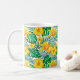 This ceramic coffee mug is shown in a lovely tropical palms floral print.