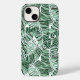 This iPhone 14 case is shown in a lovely green colour tropical palms print.