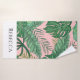 Tropical Palms Leaves Stripe Name Pink Beach Towel