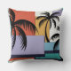 Tropical Palms on Geometric Sunset Background Cushion
