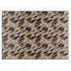 Tropical animal pattern of watercolor tiger stripes and golden palm fronds set on a pastel pink and purple background.