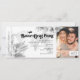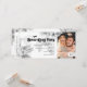 Modern black & white wedding boarding pass ticket featuring a simple white background, a photo of the couple, rustic grayscale watercolor pampas grass, dried leaves and florals, a QR code for you to delete or replace with your own, and a editable all in one wedding template that is easy to personalise.