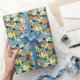 Surface pattern with papaya fruits, leaves and flowers and Superb Starling birds. Summer tropical pattern with birds and fruits. Superb Starling bird eating papaya seeds. Exotic papaya fruit pattern