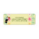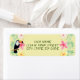Here's return label with a tropical theme. This design features a yellow background with green ferns and tropical flowers. On the left side label there's a tropical bird. You can customise background colour.