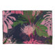Exotic green and pink tropical palm leaves and protea flowers, drk blue background. Floral seamless pattern. Tropical illustration. Summer beach design. Paradise nature.
