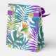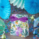 Colourful tropical leaves of palm trees, monstera, plumeria flowers and birds of paradise