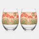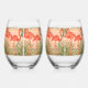 Tropical Paradise Flamingo Art Deco Stemless Wine Glass