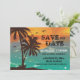 A beautiful, tropical design with turquoise waters and a big sunset. Send a Save the Date announcement with attractive card.