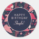 Celebrate a special day with this vibrant Tropical Parrot Happy Birthday Custom Sticker! Featuring a beautiful pattern of pink and red parrots amidst lush green foliage on a dark navy background, this design brings a touch of exotic charm to any celebration. The center circle is fully customizable with the birthday person's name, making it perfect for party favors, gift seals, envelope closures, or decorative touches. Add a unique, personalized flair to your tropical themed birthday party with this eye catching design!