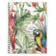 Tropical parrots, hibiscus: watercolor pattern. notebook