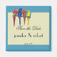 This fun Save the Date magnet is a great way to keep your wedding date on everyone's mind! The background is blue and tan with 4 colourful tropical parrots. Your text is centred in the centre.