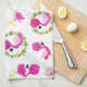 Tropical Pattern, Flamingos, Flowers, Your Name Tea Towel