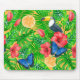 Watercolor pattern with toucan, butterfly, hibiscus and tropical leaves. I painted elements for the pattern with watercolors on paper, then scanned them and made the pattern in Illustrator