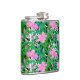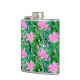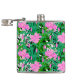 Vector seamless floral pattern with tropical decor: big pink flowers on background of palm leaves silhouettes, bushes, branches and jungle foliage © and ® Bigstock® - All Rights Reserved.
