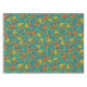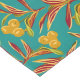 Seamless tropical pattern featuring stylised red and yellow striped leaves and clusters of yellow berries against a vibrant teal background.