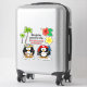 For the tropical island-loving couple! A cute pirate penguin with red bandanna, sword and parrot is with a pretty hula penguin in grass skirt and colourful flower crown. Coconut trees, red and yellow tropical flowers. Customise the penguin bandanna and skirt with your initials. If you like, replace the "Penguins mate for life. I be glad you be me penguin" sample text with your own. Perfect for honeymoon, wedding proposal, engagement and anniversary or just your annual tropical vacation/staycation.