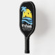 A super fun pickleball paddle featuring a "pickleball sun" surrounded by a palm tree and blue ocean waves. Add 3 lines of custom text - club name, location, player's name, phone number, etc. Or delete and just have the graphic. Makes a perfect gift for all pickleball players - dads, moms, friends, kids, grandparents, pickleball partners, coaches, pickleball club members - both beginners and experienced players alike are sure to love this one of a kind paddle.