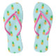 Add a touch of tropical flair to your summer wardrobe with these eye-catching beach sandals. Showcasing a whimsical all-over print of cheerful pineapples on a cool light blue base, these sandals are designed to bring joy to your steps. The contrasting bright pink straps offer a secure and comfortable fit, while the overall design evokes feelings of sunshine and vacation. Perfect for any sunny occasion, these pineapple print sandals are sure to become your go-to footwear.
