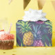 Bold tropical pineapple pattern with painterly brushwork in vibrant purples, pinks, yellows, and greens against a deep purple background. This eye-catching design features oversized pineapples with lush fronds in an artistic, almost impressionistic style. Perfect for summer celebrations, tropical themes, and anyone who loves bright, cheerful fruit patterns.