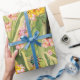 Tropical pineapples and flowers leaves jungle wrapping paper
