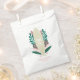 Surfs up! Tropical surf themed baby shower thank you favour bag with a natural wood grain surfboard and tropical leaves in shades of pink and green.