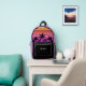 Cool hot pink and black palm tree backpack for a girls trip to a tropical island. Features beautiful palm trees in front of a pretty pink beach sunset. Perfect custom monogram backpack for your cruise or summer trip to the sea.