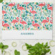 Tropical Pink Flamingo an tropical leaves pattern Tea Towel