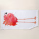 Original artwork of a tropical pink flamingo by artist Carolyn McFann of Two Purring Cats Studio printed on a quality, generous sized beach towel. Great for the beach, pool or home bath!