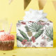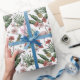 This elegant tropical flaming wrapping paper features a floral pattern of hand-drawn pink flamingos, hibiscus and jasmine flowers, pineapples, banana leaves and tropical drinks, all against an elegant white background.