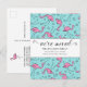 Tropical Pink Flamingo on Aqua Moving Announcement Postcard