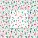 A modern tropical pattern featuring a lovely pink cartoon flamingo, a colourful toucan, watermelon and lemon slices and green leaves.