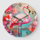 Tropical Pink Flamingo with Flowers-87361 Large Clock