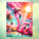 Tropical Pink Flamingos Palm Trees Sun Water Teal