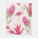 Tropical pink flowers, protea, bird of paradise fl fleece blanket