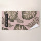 Tropical Pink & Gold Palm Leaves Pattern & Name Bath Towel Set