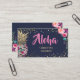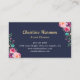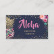 Tropical Pink Gold Pineapple Floral Navy Blue Business Card